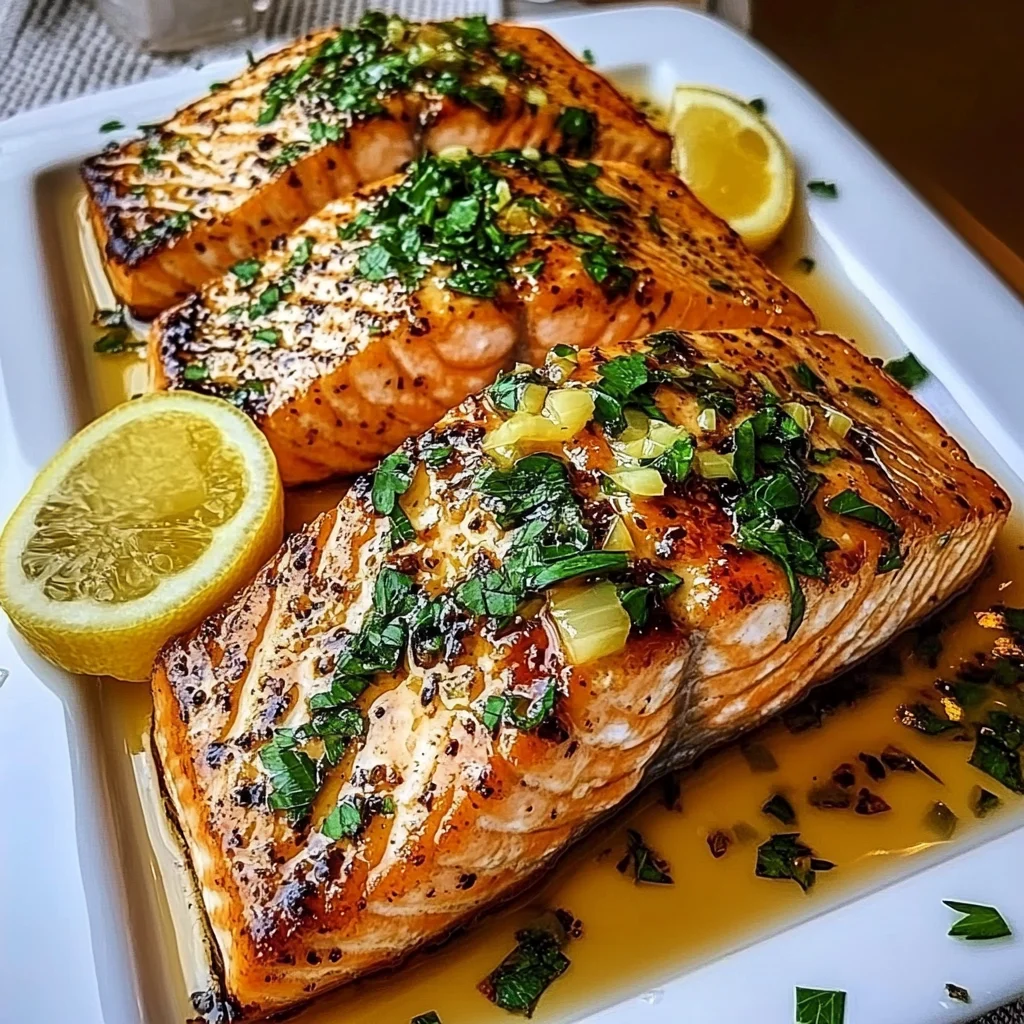 - And just like that, you’ve made restaurant-quality salmon! Serve your Lemon Garlic Butter Salmon Fillets immediately, with a generous spoonful of that shimmering sauce over each piece. Garnish with freshly chopped parsley for a burst of green and a hint of freshness. This dish pairs wonderfully with a simple salad or some fluffy rice, perhaps even some of my high-protein garlic shrimp fried rice for a complete meal!