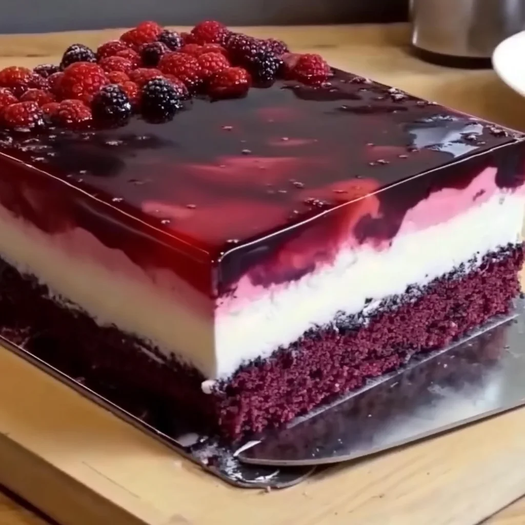 And voilà! Your Fantasy Cake is ready to slice and enjoy. I love how the layers come together — the rich chocolate base, the luscious mascarpone, the fresh berry mousse, and that shiny jelly finish make it feel like something straight out of a patisserie.