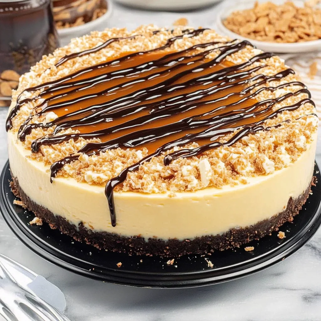 - Step 2 (Assembly and Garnish): Spread the coconut and caramel topping evenly over the top of the chilled cheesecake.