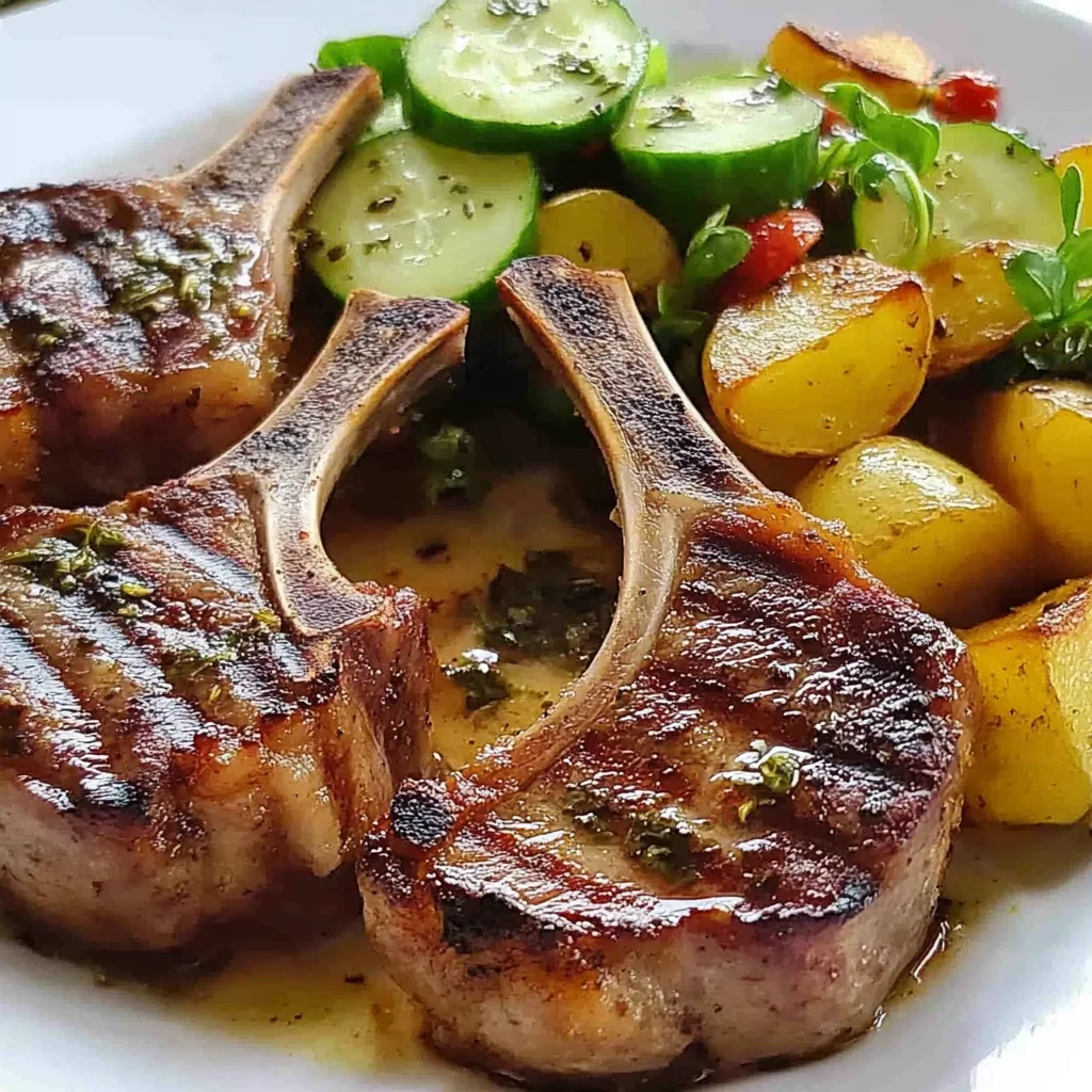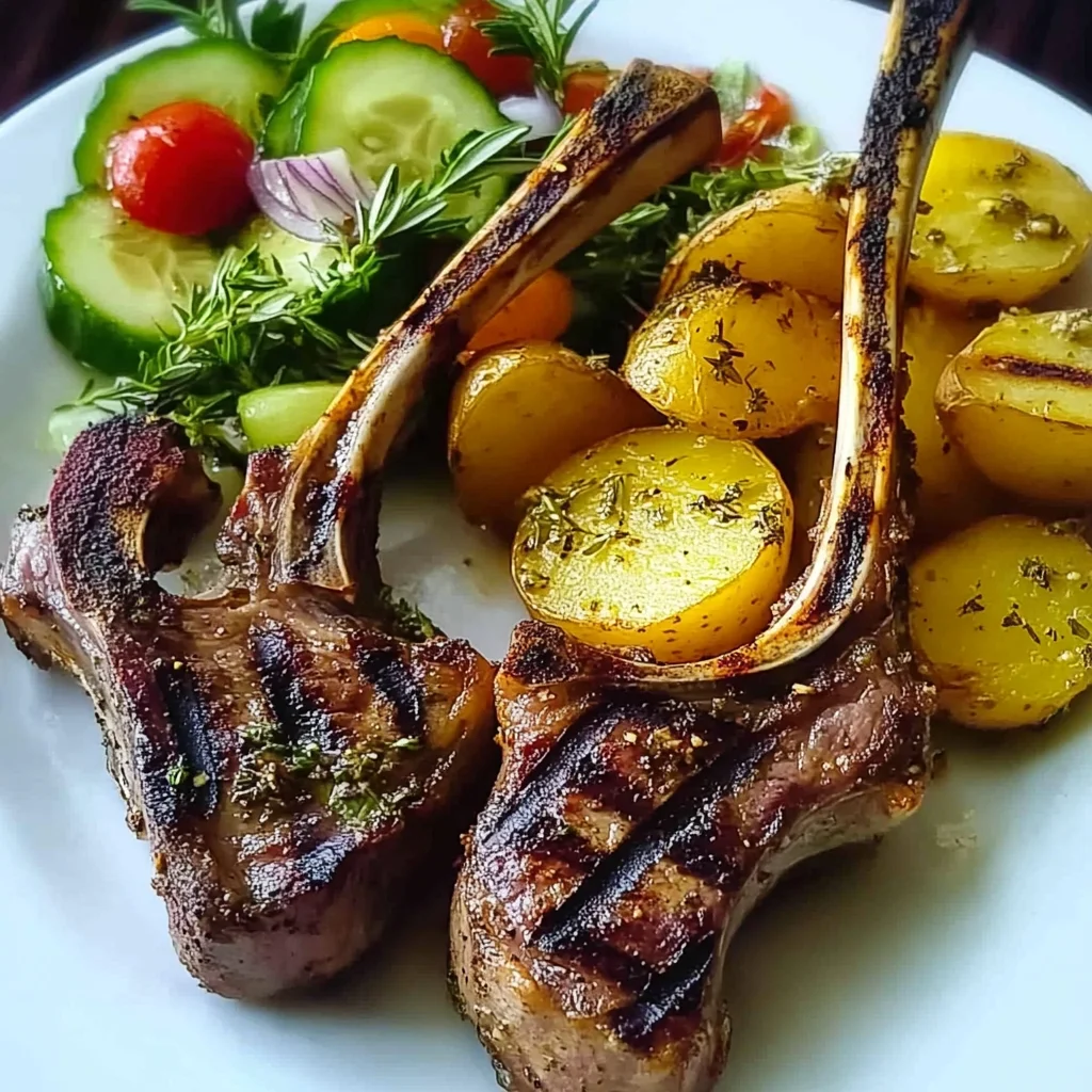 Herb-grilled Lamb Chops With Golden Potato Wedges & Fresh Cucumber Salad Recipe