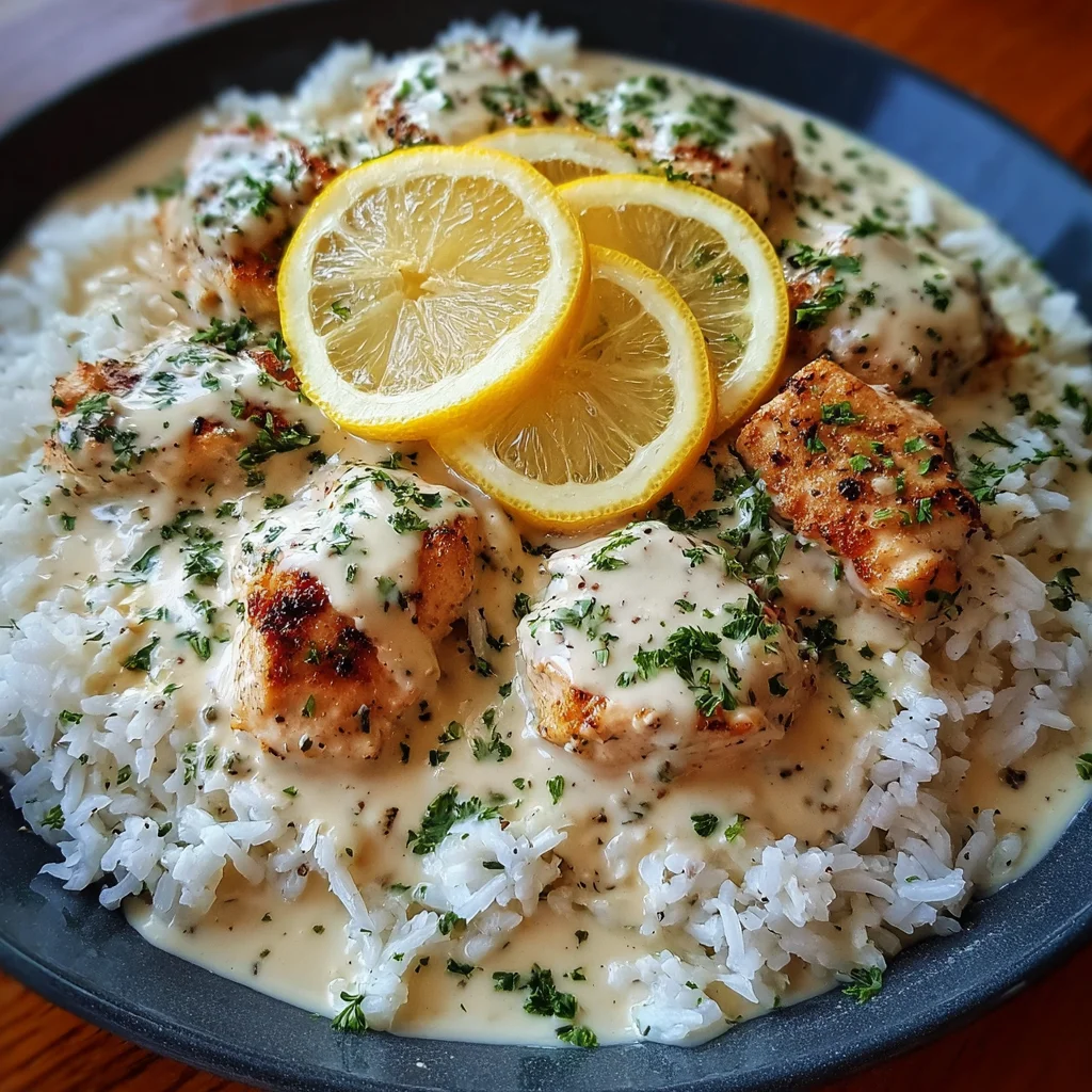 Super Creamy Lemon Garlic Chicken With Rice Recipe