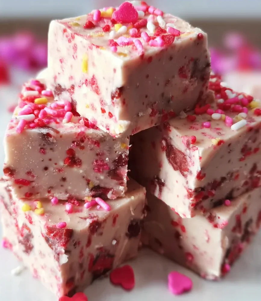 This festive Valentine’s Day fudge is rich, creamy, and loaded with colorful sprinkles, making it a perfect sweet treat to gift, share, or enjoy yourself.